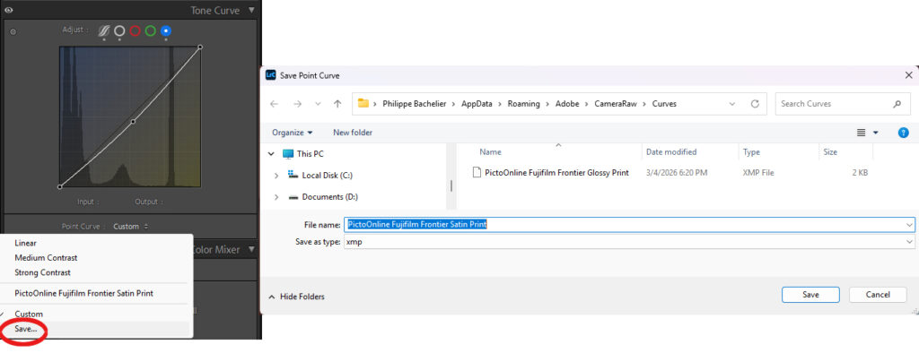 As you process images, you will notice that you tend to use the same types of curves. You can save these custom curves for both basic and local adjustments. They are saved in XMP format in the Camera Raw preferences. On a PC, they are located in the Curves folder, found at “C:\Users\User\AppData\Roaming\Adobe\CameraRaw\Curves.”