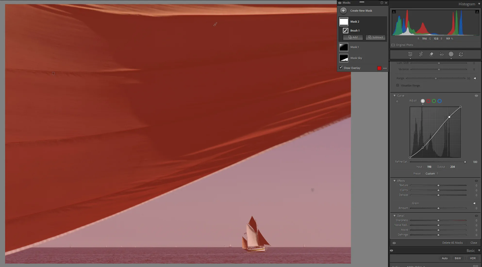 Combined with Lightroom’s “smart” masking, it offers powerful targeted adjustment capabilities. Curves greatly increase the possibilities for adjustment. In fact, regardless of the software, this type of adjustment is the solution for most of our needs in terms of controlling density, contrast, and chromaticity.
