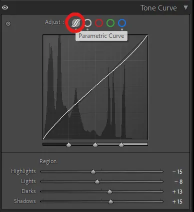In Lightroom, the tone curve comes in two forms: the parametric curve and the point curve. The first modifies the image using sliders, by region: highlights, midtones, shadows, and blacks. It is equivalent to adjusting levels in Photoshop, targeting specific tone areas. To unlock its full potential, the point curve is essential.