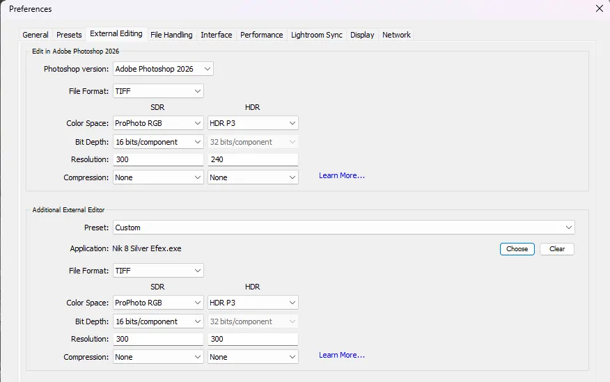 To set up Silver Efex as an additional external editor in Lightroom, go to Lightroom’s preferences and click the “Select” button to choose the Silver Efex application.
