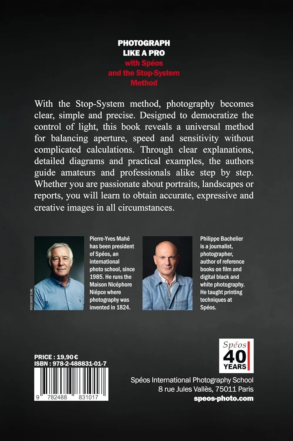 The book Photograph Like a Pro with Spéos and the Stop-System Method, written by Pierre-Yves Mahé and Philippe Bachelier, presents this method in a clear and structured way. It serves as a reference work for understanding the fundamentals of photography and mastering exposure.