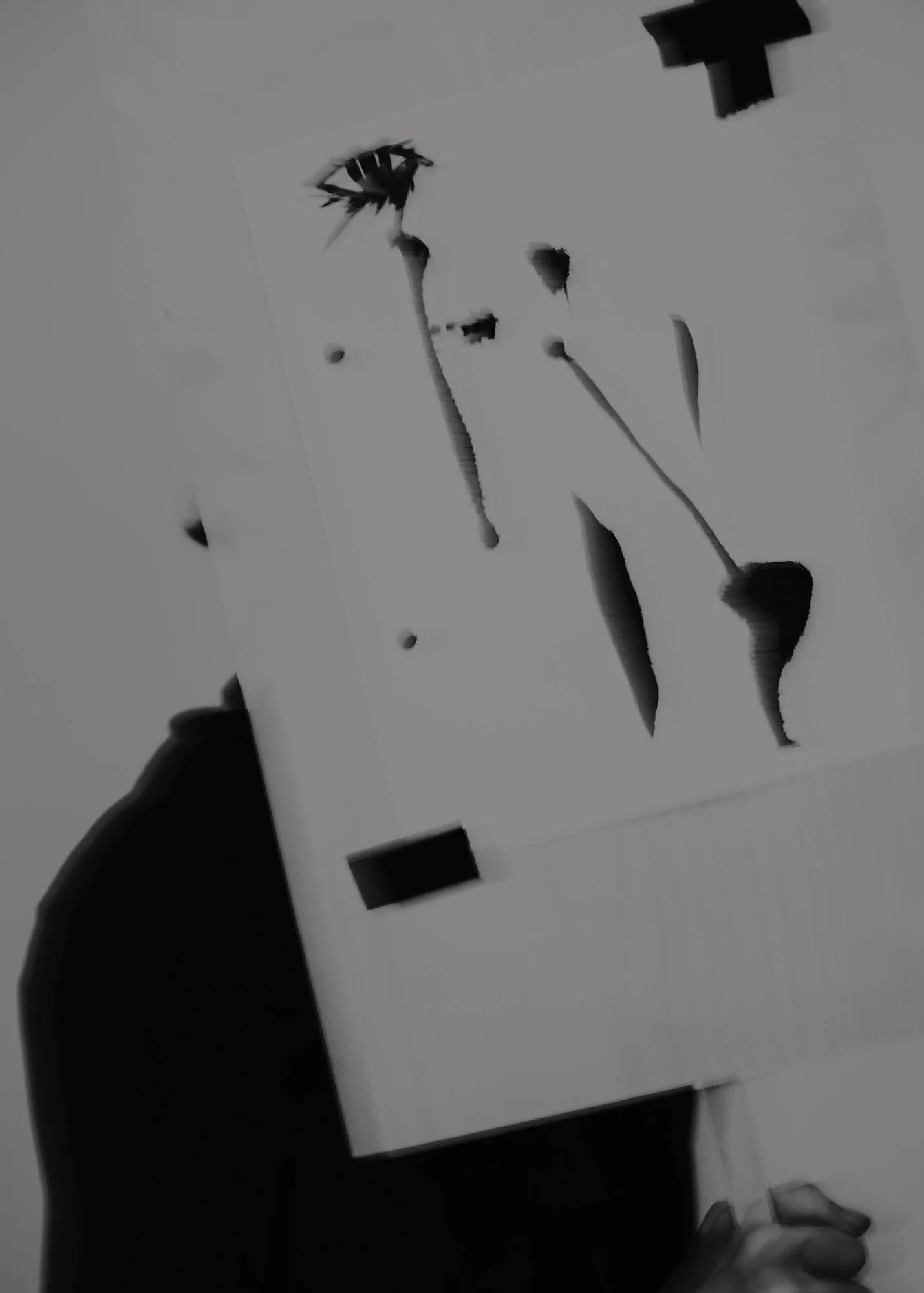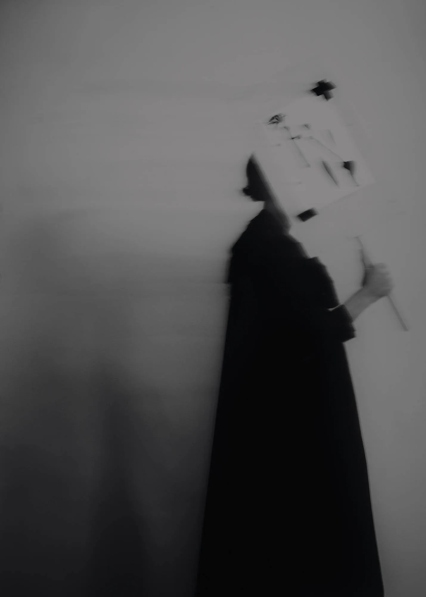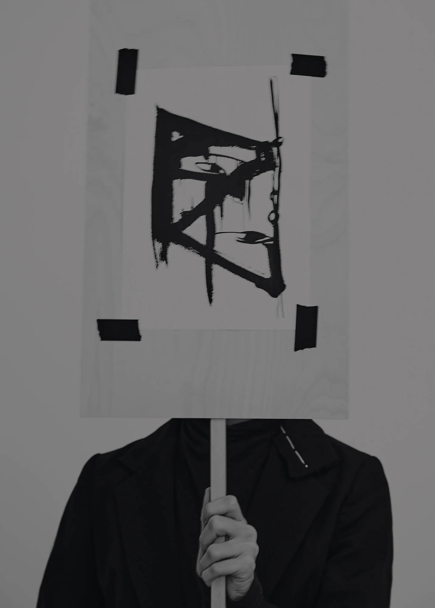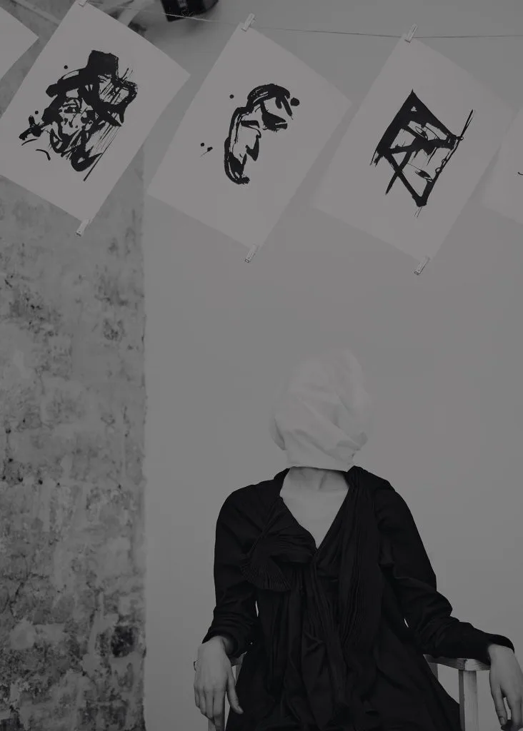 En su serie experimental « Facial Reaction Occurring », Mai Yoshida cuestiona la relación entre rostro, emoción e identidad. Los modelos, envueltos en tejidos negros fluidos, se vuelven anónimos. Sus “rostros”, reducidos a dibujos fijados en palos, evocan máscaras intercambiables. Las emociones, representadas como accesorios, invitan a preguntarse: ¿son auténticas o se interpretan como un papel?