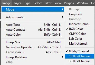 A diferencia de los archivos Raw, cualquier modificación de una imagen matricial es irreversible y puede provocar efectos indeseados, como bandas de color, halos, etc., especialmente cuando se realizan muchas modificaciones. Recuerde que la profundidad de muestreo de 16 bits conserva mejor los matices de una imagen retocada. Al abrir el archivo, compruebe si es de 8 bits o de 16 bits en Imagen > Modo.