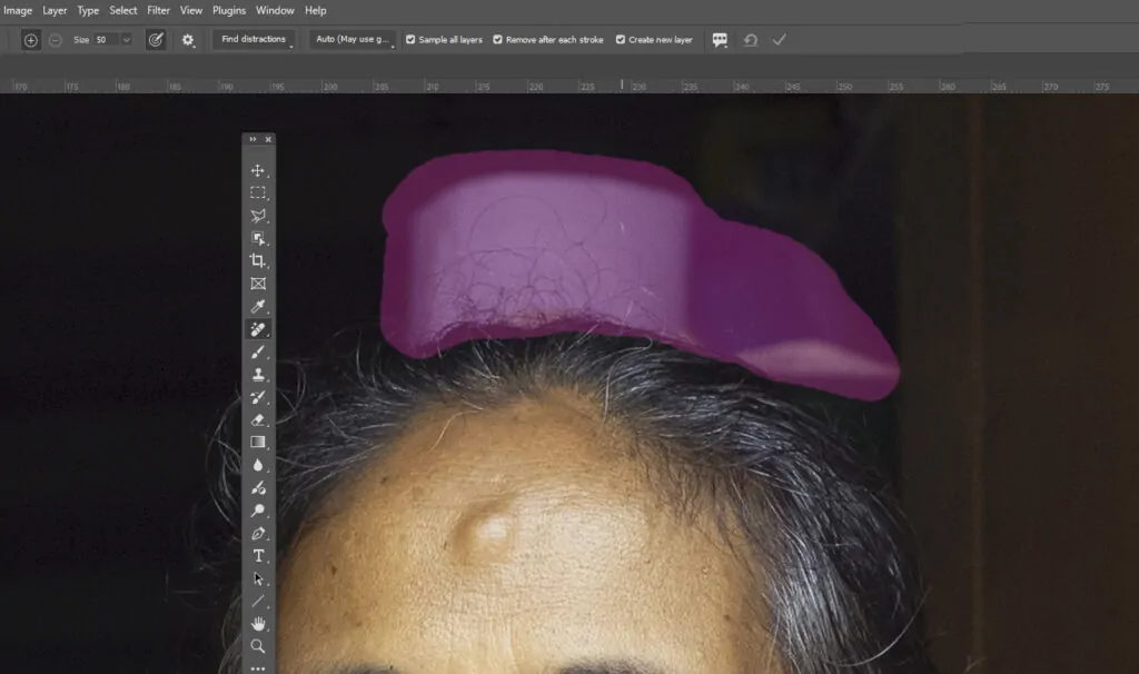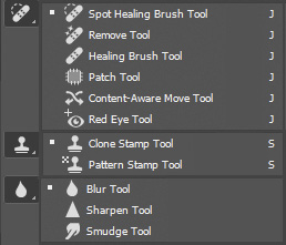 Hay muchas herramientas que se pueden utilizar en una capa separada: corrector, corrector localizado, parche, eliminar, desplazamiento basado en el contenido, pincel, tampón, gota de agua, dedo, nitidez.