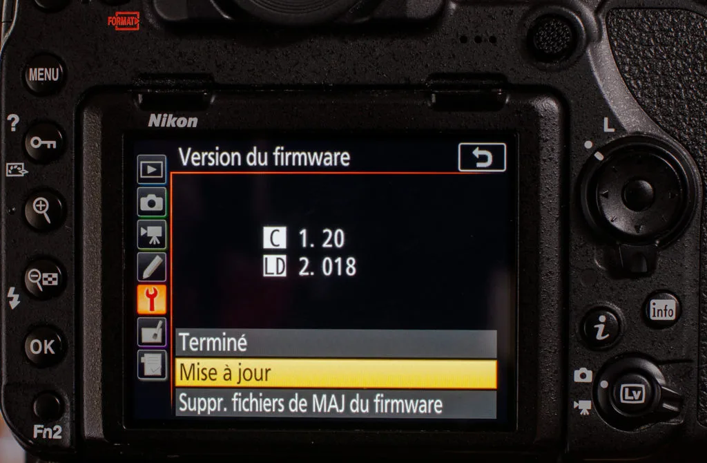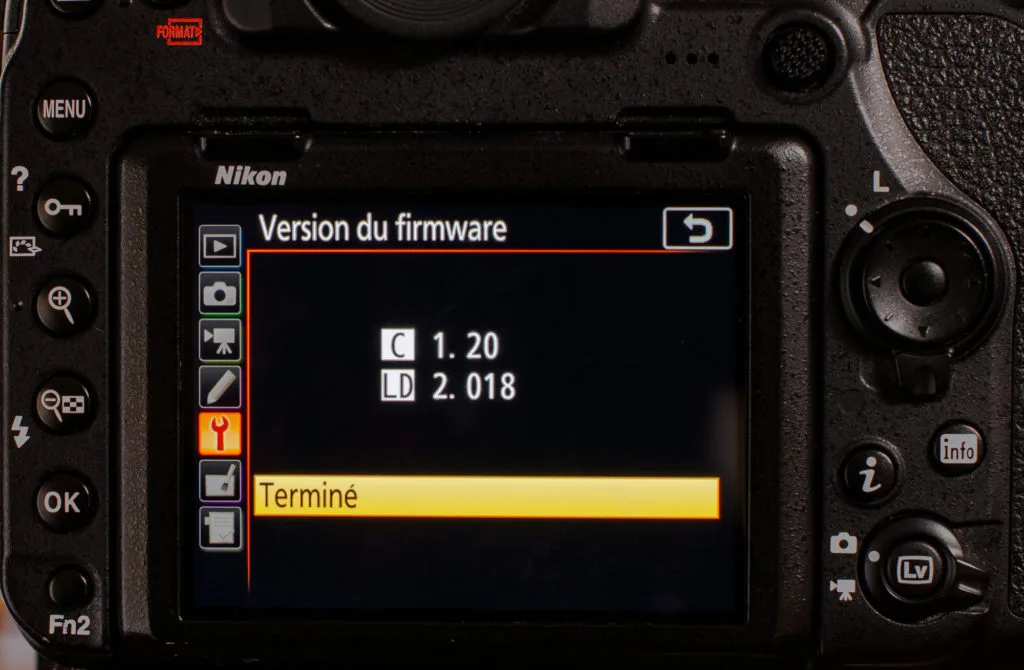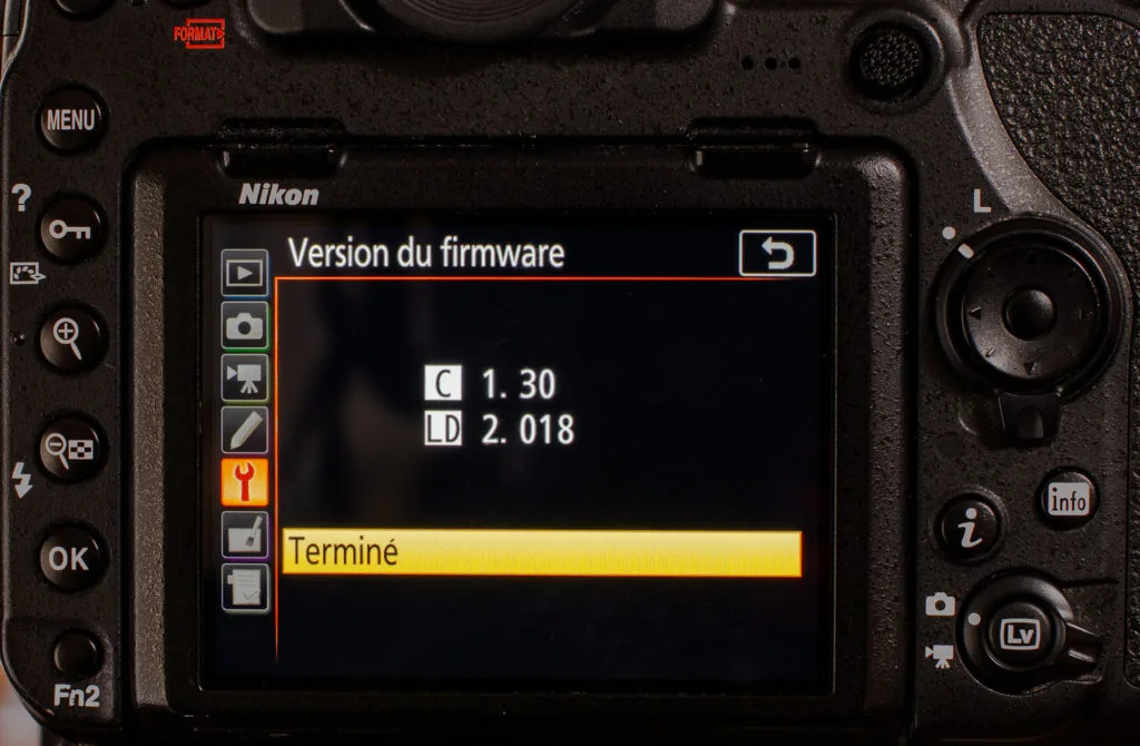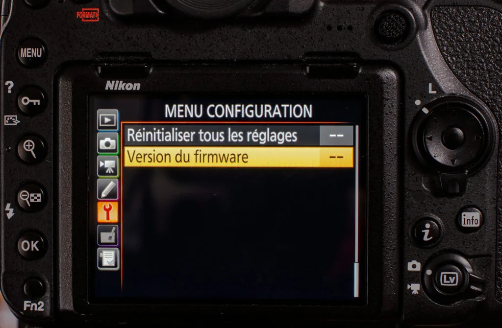 La version du firmware se vérifie dans le menu du boîtier.