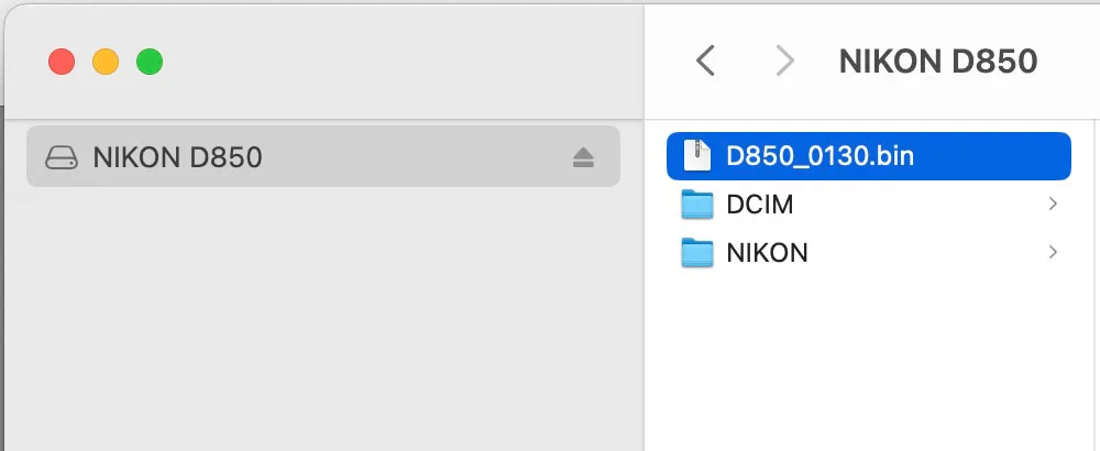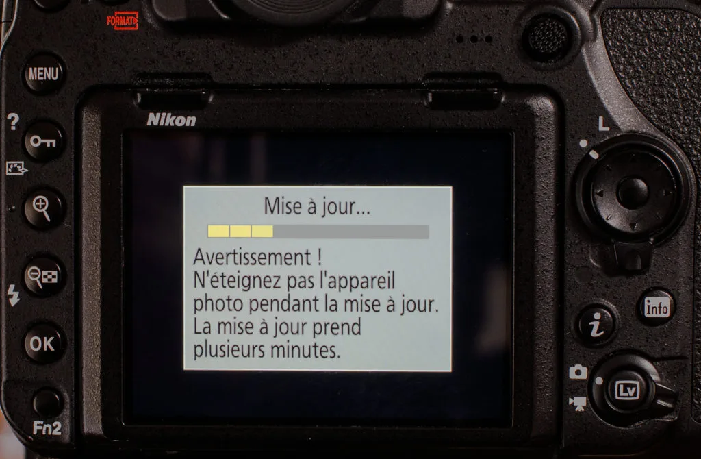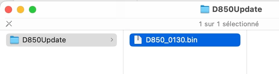 La marche à suivre est indiquée sur le site. Par exemple, pour mettre à jour le firmware d’un Nikon, il faut ouvrir le fichier téléchargé F-D850-V130M.dmg (nom pour un fichier pour ordinateur Apple) ou F-D850-V130W.exe (nom pour un fichier pour ordinateur PC Windows) , qui devient D850Update pour un boîtier D850. A l’intérieur de D850Update se trouve D850_0130.bin, le firmware de l’appareil photo dont l’extension est “.bin”. À l’aide d’un logement pour carte ou d’un lecteur de cartes, copiez D850_0130.bin sur une carte mémoire qui a été formatée dans l’appareil photo. Le firmware doit être copié dans le répertoire racine (le plus haut) de la carte mémoire. L’appareil photo ne reconnaîtra pas le nouveau firmware s’il est placé dans un dossier situé sous le répertoire racine.