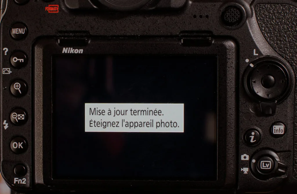 Après l’installation du firmware, l’appareil est éteint et la carte mémoire est retirée. Quand on rallume l’appareil, on peut constater que le nouveau firmware est bien installé.