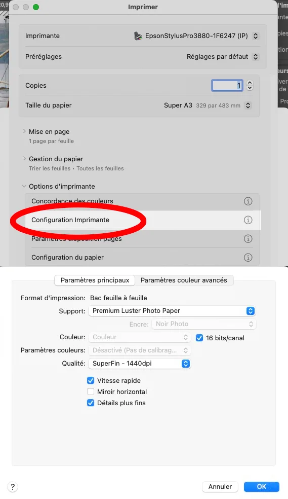 Imprimer à partir de Photoshop plutôt que Lightroom