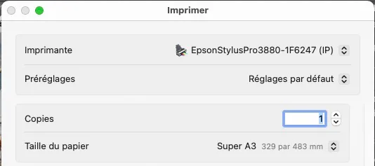On peut résoudre le défaut de prise en compte de la taille d’image en rééchantillonnant systématiquement avant d’imprimer. Par exemple décréter qu’il faut au préalable rééchantillonner toute image devant être imprimée à 45 cm à une résolution fixe, par exemple de 300 ppp. Mais cela nécessite de créer par précaution des copies des fichiers maîtres pour éviter de rééchantillonner accidentellement les originaux. Nous préférons ajuster manuellement la taille finale de l’image dans les paramètres d’impression de Photoshop, sans rééchantilloner. Le pilote d’impression ajustera automatiquement la résolution du fichier à la résolution native de l’imprimante. Pour les images de faible définition (moins de 150 ppi), un rééchantillonnage en amont avec les derniers logiciels utilisant l’IA, comme Topaz Gigapixel AI ou Photo AI est bénéfique.